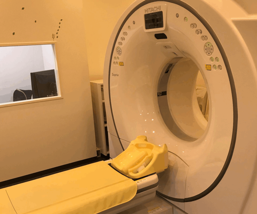 【CT検査】日立製のSpria(16列ヘリカルCT)をクリニック内に設置しています。頭部CTだけではなく、肺炎には胸部CT、腹痛や肝機能障害には腹部CT検査を行うなど全身の検査も可能です。CT検診や、胸部・腹部のヘリカルCT検査(一気に胸部・腹部の診断ができる方法)を人間ドックにも活用しています。