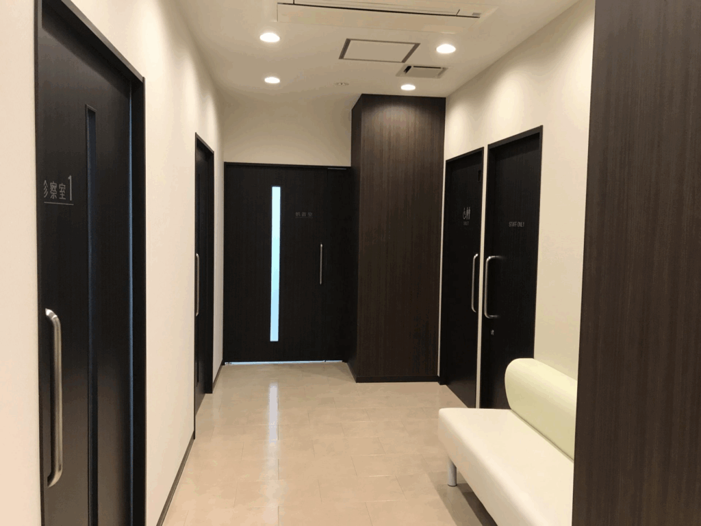 【全面バリアフリー】当クリニックはサザエさん通りに面しており、歩道から段差なく入れます。廊下やトイレも車いすでの使用を想定して設計しました。もし不安を感じられたら職員がサポートします。お気軽に声をかけください。車いすも用意があります。